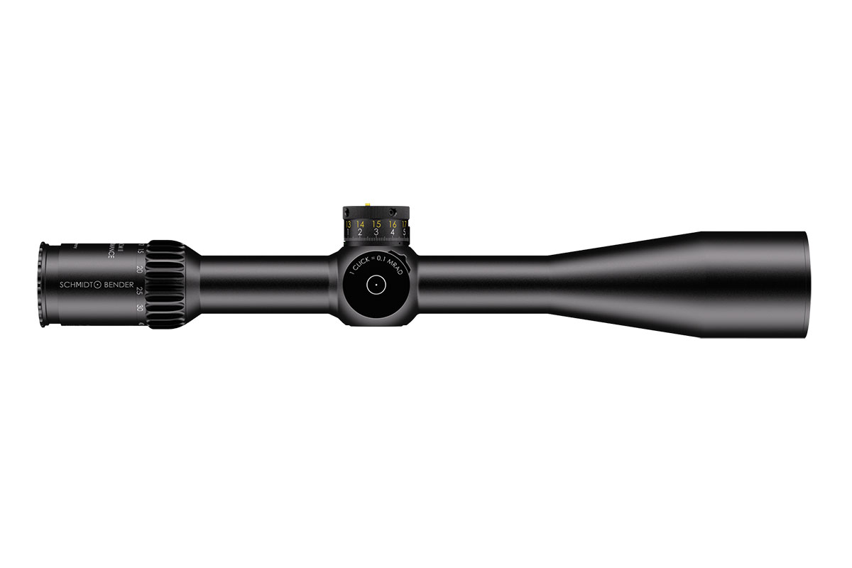 4060537066647 The 10–60×56 CM II High Performance (1.BE) is Schmidt and Bender’s flagship long‑range optic — engineered for extreme‑range competition, professional precision shooting and reconnaissance where uncompromising clarity, magnification and adjustment range are mandatory. Combining a massive 10–60× zoom with a large 56 mm objective, this scope delivers exceptional image resolution and brightness at extreme distances while retaining practical ergonomics for field use. Advanced optical coatings and a refined optical path yield light transmission well above 90%, producing high contrast and excellent target detail even at very high magnifications. The reticle in the first focal plane (FFP) ensures hold‑offs and subtensions remain accurate across the entire magnification range, making the scope ideal for real ranging and ballistic corrections on the fly. Mechanically the CM II High Performance is built around a 34 mm main tube with huge internal adjustment capacity. The elevation envelope exceeds 23 mrad (≈79 MOA) to cover extreme ballistic needs, and ultra‑fine turret options (as low as 0.1 mrad click value) allow precise, repeatable adjustments. The housing is engineered to operate in harsh environments and wide temperature ranges while maintaining mechanical integrity and point‑of‑impact reliability. Key Specifications Magnification: 10–60× Objective Lens Diameter: 56 mm Main Tube Diameter: 34 mm Elevation Adjustment Range: > 23 mrad (approx. 79 MOA) Typical Click Value: 0.1 mrad (configuration‑dependent) Eye Relief: ~90 mm Exit Pupil: approx. 5.6 mm → 1.0 mm across the zoom range Weight: ~940–999 g (configuration dependent) Length: ~442 mm Optical Transmission: > 90 % Reticle: First Focal Plane (FFP) Durability: Weatherproof, fogproof and built for professional field use
