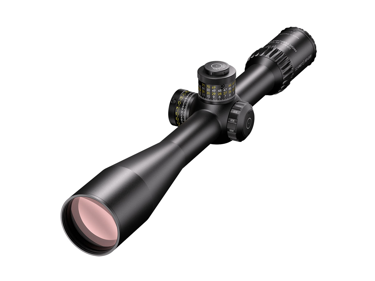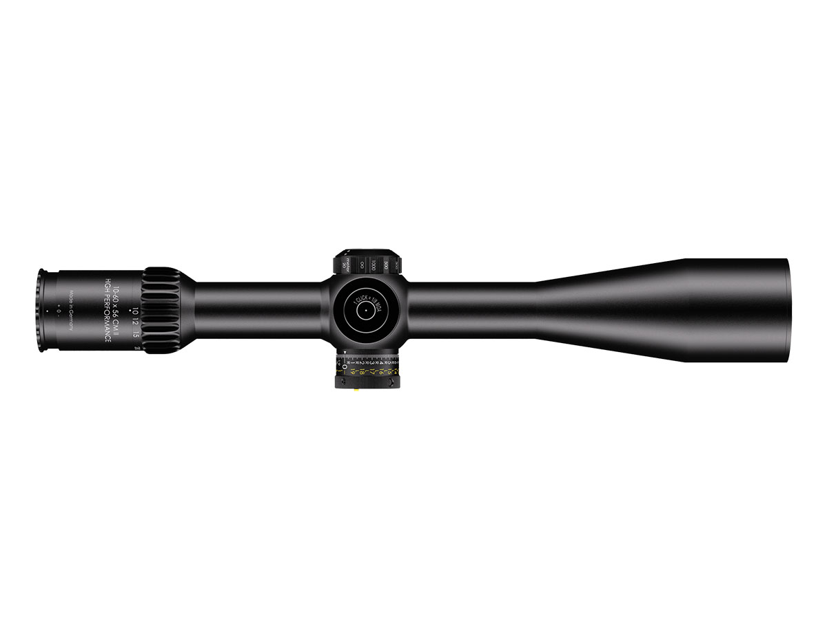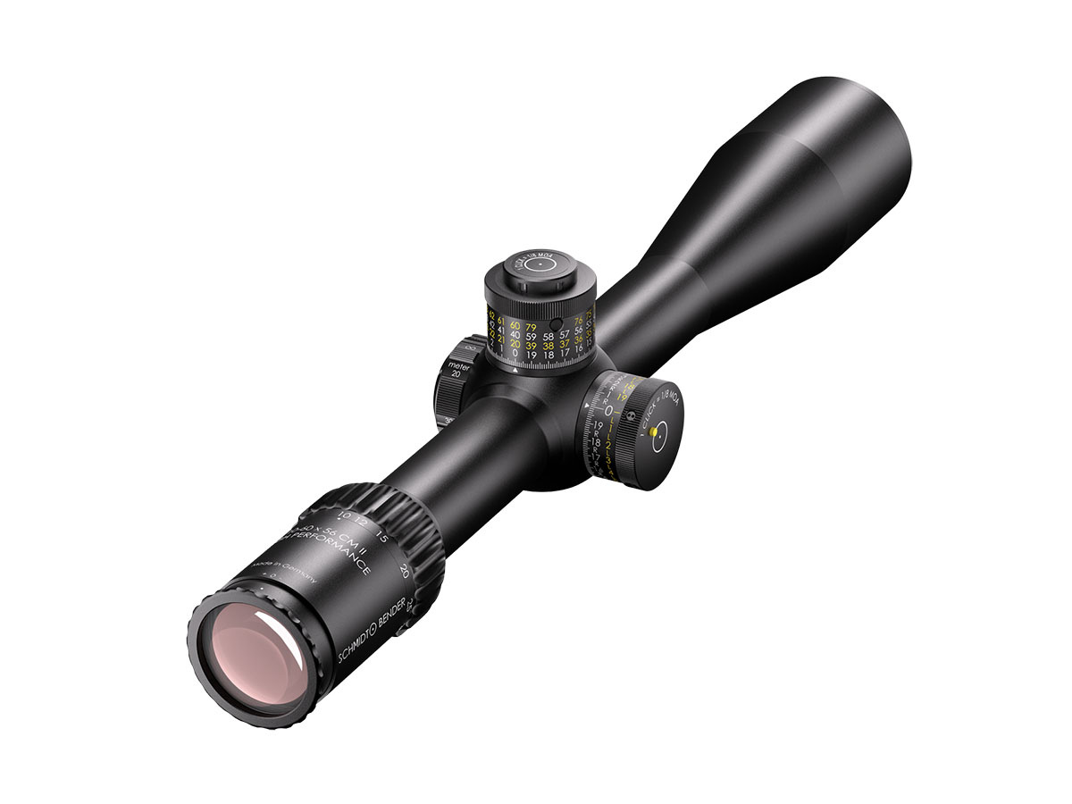 4060537066913 The 10–60×56 CM II High Performance (1.BE) is Schmidt and Bender’s flagship long‑range optic — engineered for extreme‑range competition, professional precision shooting and reconnaissance where uncompromising clarity, magnification and adjustment range are mandatory. Combining a massive 10–60× zoom with a large 56 mm objective, this scope delivers exceptional image resolution and brightness at extreme distances while retaining practical ergonomics for field use. Advanced optical coatings and a refined optical path yield light transmission well above 90%, producing high contrast and excellent target detail even at very high magnifications. The reticle in the first focal plane (FFP) ensures hold‑offs and subtensions remain accurate across the entire magnification range, making the scope ideal for real ranging and ballistic corrections on the fly. Mechanically the CM II High Performance is built around a 34 mm main tube with huge internal adjustment capacity. The elevation envelope exceeds 23 mrad (≈79 MOA) to cover extreme ballistic needs, and ultra‑fine turret options (as low as 0.1 mrad click value) allow precise, repeatable adjustments. The housing is engineered to operate in harsh environments and wide temperature ranges while maintaining mechanical integrity and point‑of‑impact reliability. Key Specifications Magnification: 10–60× Objective Lens Diameter: 56 mm Main Tube Diameter: 34 mm Elevation Adjustment Range: > 23 mrad (approx. 79 MOA) Typical Click Value: 0.1 mrad (configuration‑dependent) Eye Relief: ~90 mm Exit Pupil: approx. 5.6 mm → 1.0 mm across the zoom range Weight: ~940–999 g (configuration dependent) Length: ~442 mm Optical Transmission: > 90 % Reticle: First Focal Plane (FFP) Durability: Weatherproof, fogproof and built for professional field use