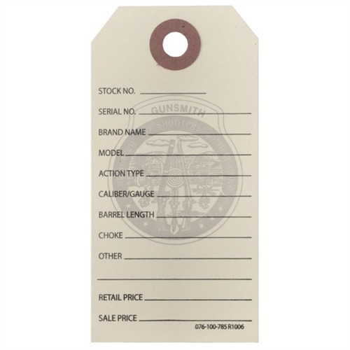050806022485 For deg eller dine ansatte å huske prisen og hver detalj om hver våpen i butikken er nesten en umulig oppgave. Et våpen solgt til feil pris eller et salg tapt fordi kundens spørsmål ikke ble besvart, er penger ut av lommen din. Disse prislappene for våpen ble designet med hjelp fra våpensmeder som deg for å stoppe disse problemene. De lar kunden (og salgspersonell) gjøre "epler-til-epler" sammenligninger og deretter velge våpenet som passer best til deres behov. Det er 11 forhåndstrykkede overskrifter for: Lager nr.; Serienr.; Merkenavn; Modell; Kaliberdiameter; Løpslengde; Handlings type; Kaliber/kaliber; "Annen" info; en blank linje; en detaljert prislinje og et blankt felt. 3 forskjellige farger gir umiddelbar identifikasjon; lar deg lage ditt eget fargekodede system for nye og brukte, eller kommisjonsvåpen.Leveringstid ca. 14-21 dager.