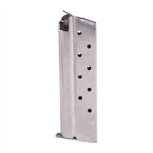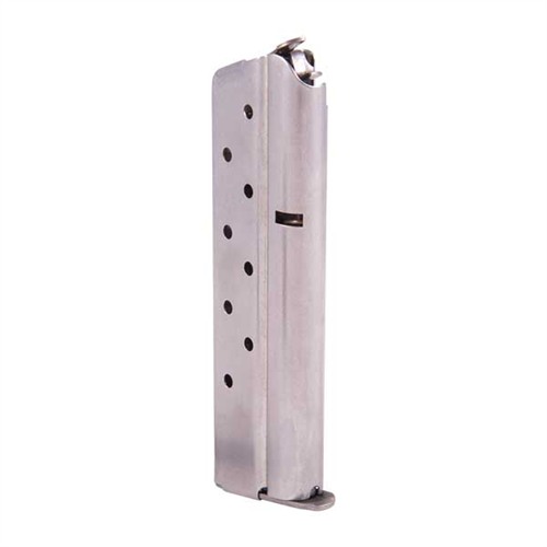 Robuste, høykvalitets amerikansk-produserte magasiner i blåst karbonstål og rustfritt stål for 1911 Auto-pistoler kamret for en rekke kalibre. Velg mellom runde eller flate stål følgere, begge designet for å gi positiv mating av siste patron med alle type kuler, inkludert wadcutters. Den sikkerhetsoransje nylonfølgeren er konkav for å holde en ekstra patron.