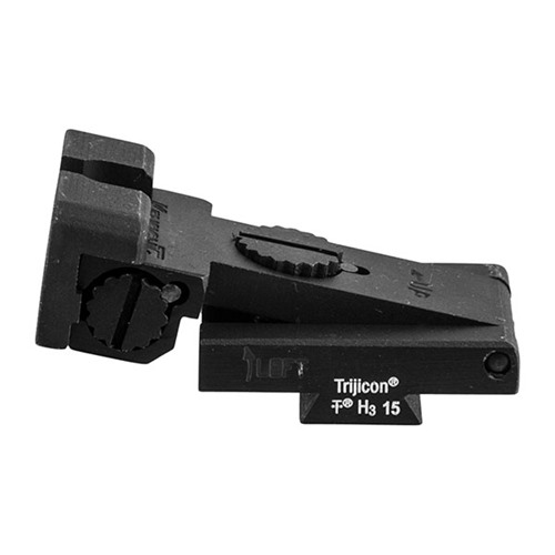 Genuine, Trijicon, green Tritium lamps feature polished quartz lenses for improved sight recognition in low light, plus appear as white dots for enhanced sight acquisition in bright sunlight as well. Sight bodies are EDM machined from 4140 steel, then heat-treated to Rc 38-40 and vacuum tempered to retain the extra-tight tolerances. Features precise click-adjustments for consistent changes in windage and elevation. Fine line serrations on rear blade surface cuts light reflection to enhance sight pick up.
