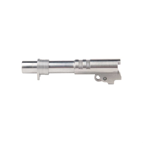 - Barrel med forhåndsmontert hood, topp lugs og bunn føtter for en svært tett passform som gir økt nøyaktighet i de fleste 1911 Autos.
