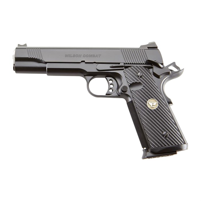 CQB 1911 ELITE FULL SIZE 45 ACP SEMI-AUTO HANDGUN The Close Quarters Battle Elite blows the competition away with a standard package of custom features designed to meet the needs of tactical shooting professionals, each selected with the input of experts in the field. Here’s what is standard: Bullet Proof® parts throughout, serrations on the top and the rear of the slide, Battlesight rear sight with fiber optic front sight, matching serrations on the back of the extractor, checkered mainspring housing and front strap for a sure grip, and standard G10 grips with a tapered cut-out for easy access to the semi-extended magazine release button. If your requirements are for a combat pistol, a must-work-every-time firearm, custom built to your specifications, put a Wilson Combat® CQB Elite On Your Side® today. FEATURES: Full-Size Carbon Steel frame High-Cut checkered frontstrap High-Ride Bullet Proof® beavertail grip safety Bullet Proof® Tactical thumb safety 3 ½# – 4 ½# crisp trigger pull Bullet Proof® magazine well Bullet Proof® magazine release G10 Diagonal flat-bottom grips 5" Carbon Steel slide Battlesight with fiber optic front sight 5" Stainless Match-Grade barrel & bushing, hand fit 30 LPI slide top serrations 40 LPI serrated rear of slide Front cocking serrations SPECIFICATIONS: Cartridge: 45 ACP Magazine capacity: 8 rounds Barrel length: 5" Overall length: 8.7" Sight radius: 6.6" Height: 5.6" Width: 1.3" Weight empty: 41 oz Weight loaded: 46.6 oz