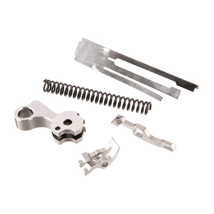 Klare deler som kan settes inn gir en ultrajevn, ren avtrekker med profesjonell kvalitet på din 1911 Auto på bare minutter. Den fullt forberedte hammeren og forhåndsbehandlede, forhåndspolerte searen, pluss fjærer og fullt maskinert disconnector, kan installeres i de fleste modeller av 1911 Autos med lite eller ingen tilpasning nødvendig.