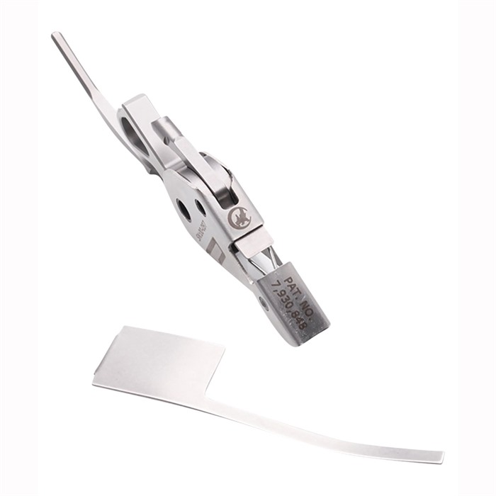 DTS er en alt-i-ett-enhet som erstatter din eksisterende hammer, hammerstrut, sear, disconnector og searfjær. Din eksisterende searpinne og hammerpinne vil bli beholdt for bruk med DTS, men ingen andre deler er nødvendige for installasjon. Med et stålhus som sikrer enheten, har DTS fullt maskinerte, rustfrie stålinternkomponenter.