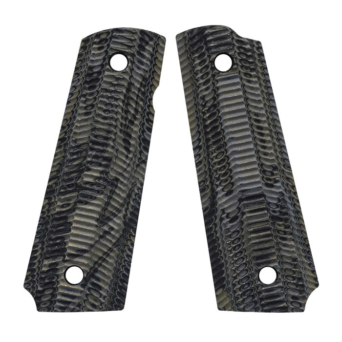 Inspired by the original Gator Back VZ 1911 Alien® grips were originally designed for the Precision Weapons Section of the U.S. Marine Corps, but quickly became a favorite as soon as they were offered to retail customers. These grips offer a great blend of form and function, proving a decent amount of bite without being too harsh while looking good on modern and classic 1911s alike. Great for concealed carry, target practice, or even safe queens. Designed to fit all of the most popular full-size (Government or Commander) 1911 models from Colt®, Springfield Armory®, Kimber®, Rock Island Armory®, Dan Wesson Firearms®, and many more. Cut for ambidxtrous safeties Frame: Full Size 1911 Weight: 2.19oz - 62.0g (approximate) Material: G-10 or Micarta Aggressiveness: 2 out of 5