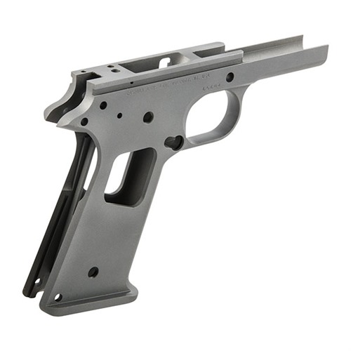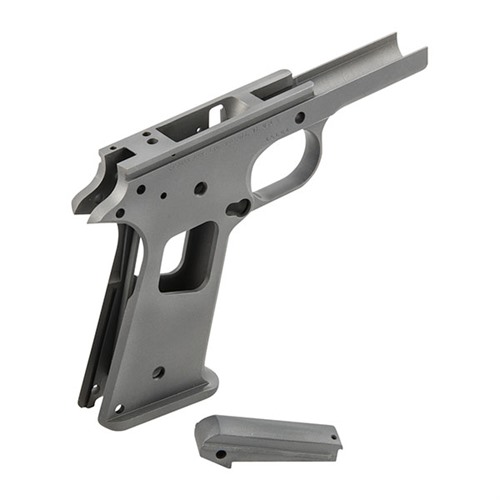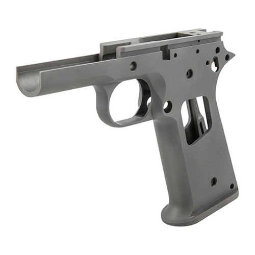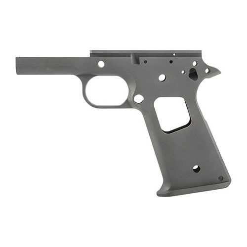 Choose The Built-In Custom Features You Need; Save Time & Money Build an outstanding, custom 1911 using one of these top-quality, single-stack receivers as the foundation. Models and features available for any custom project needs. Precision cast from carbon or stainless steel, and CNC machined to final dimensions. Heat treated to Rc 22-24 for optimum performance and durability. Oversize frame rails allow the gunsmith to achieve an exceptionally tight slide-to-frame fit for more consistent accuracy. Select models available with smooth front strap or with crisp CNC machine-cut checkering. Race-Ready features integral, flared magazine well for lightning fast magazine changes. Smooth contours and absence of unsightly seams give your pistol a streamlined look. FITS: 9mm/38 Super DOES NOT FIT: 45acp