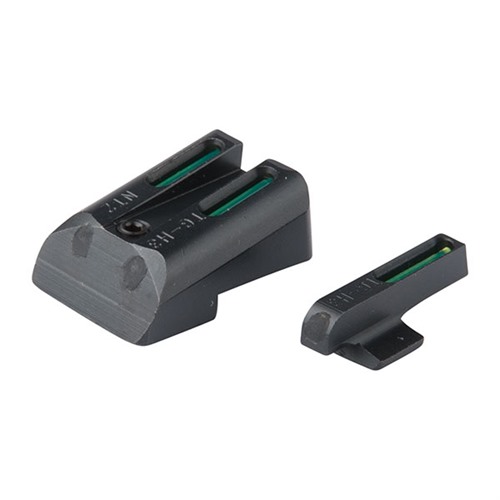 SPECS: Steel, matte black finish. Fiber optic/Tritium rods, green front/green rear or green front/yellow rear. Sight heights regulate with Govt. or Off/Comm models chambered in 45ACP. Fit 65degree x .495" nominal rear dovetail and 65 degree x .330 front.