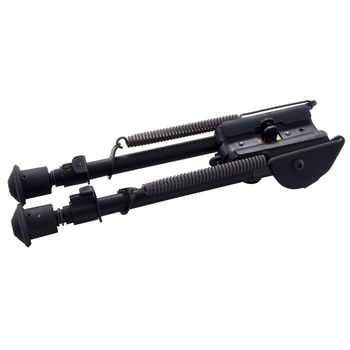 Mounts to QD swivel studs on bolt action and single-shot rifles for ultimate field accuracy. Won't change zero; added weight steadies gun. Spring-loaded, telescoping legs adjust quickly, fold parallel to barrel for carrying. Series 1A2 bipods have solid base and do not swivel or rotate. Series S bipods rotate 45° for instant leveling on uneven ground. Buffer springs and adjustable tension on hinged base help eliminate tremor. All Models available in either Series. All Adapters fit either Series bipods. Not recommended for lever actions.