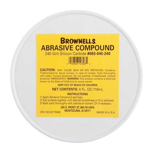 SILICON CARBIDE ABRASIVE COMPOUND #240 GRIT fra BROWNELLS er den ultimate løsningen for "hard fitting" av to stålplater. Denne slipemassen tåler kontinuerlig tilpasning, selv på herdet og varmebehandlet stål.