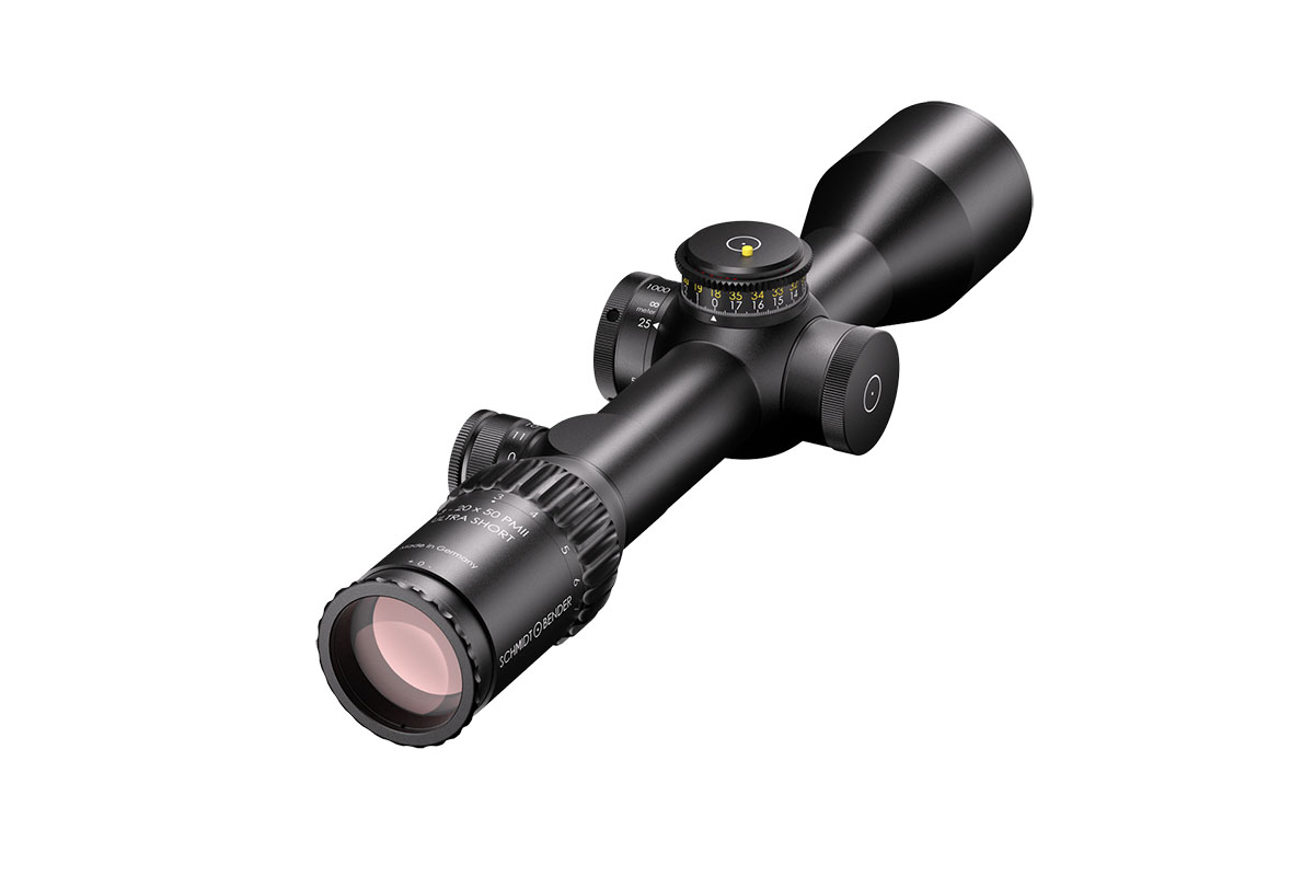 4060537030143 The 3‑20×50 PM II Ultra Short from Schmidt and Bender is a compact yet powerful riflescope engineered for high-performance engagements across medium to long distances. With its 3–20× magnification range and a 50 mm objective lens, it offers outstanding optical clarity and flexibility in a streamlined form factor. Constructed around a robust 34 mm main tube, it maintains a length of approximately 340 mm and weighs around 900 g, striking an excellent balance between size and performance—ideal for mounting on compact platforms without compromising optics. Its field of view spans roughly 13.0–2.1 m at 100 m, providing broad situational awareness at lower magnification and refined detail at the high end. The exit pupil ranges around 11.4–2.5 mm, and the eye relief is approximately 90 mm, supporting comfortable shooting in varied positions while maintaining strong light-gathering even as light fades. Advanced features include first focal plane (FFP) illuminated reticle options, side parallax adjustment (from approx. 25 m to infinity), and a low-profile elevation turret optimized for tactical precision. Key Specifications: Magnification: 3–20× Objective Lens Diameter: 50 mm Main Tube Diameter: 34 mm Field of View: approx. 13.0–2.1 m @100 m Exit Pupil: approx. 11.4–2.5 mm Eye Relief: approx. 90 mm Length: approx. 340 mm Weight: approx. 900 g With precision optics, compact build, and rugged mechanical design, the 3‑20×50 PM II Ultra Short is built for serious shooters who demand premium performance in a versatile package.