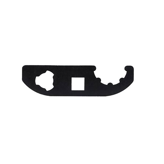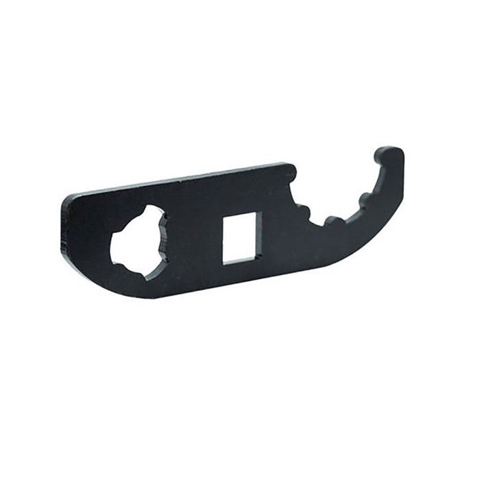 3-LUG/BLASTWAVE WRENCH fra ANGSTADT ARMS er et tosidig verktøy designet for effektiv bruk med 9mm 3-lug munningsenheter og Angstadt Arms QD Blast Shield.