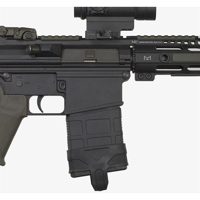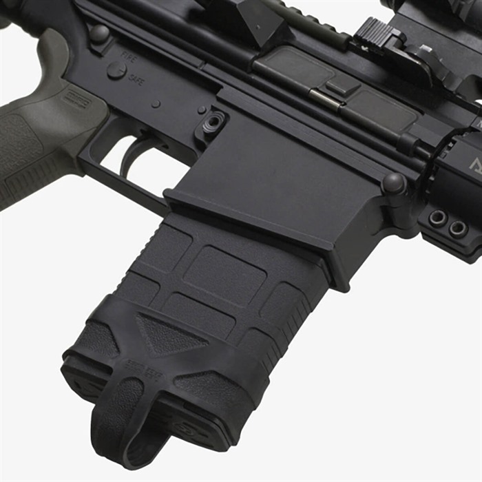 Thermoplastisk løkke installert på bunnen av et rifle- eller subgun magasin gir et lettgrep for uovertruffen hastighet og kontroll under stressende, taktiske magasinbytter. Den innfelte, grove teksturen gir en positiv gripeflate under glatte eller våte forhold.