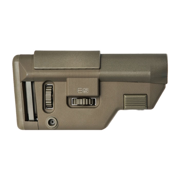Precision Stock for AR-plattformrifler fra B5 Systems redefinerer hva en presisjonsstokk egentlig er. Designet for å tillate verktøyløs, finjustering av både lengde på trekk og kinnhøyde, er B5 Systems Precision Stock unik ved at den monteres på en karabin eller A5 mottaksforlengelse for å tilby større justerbarhet i lengde på trekk enn hva som tilbys i andre stokker.