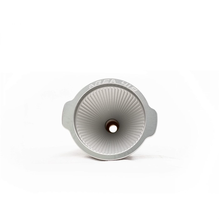 AREA 419s billet aluminum powder funnel har hoder som skrus på traktet og er spesifikke for nakke-diameteren til hvert kaliber. De er ikke avhengige av å passe over kroppen av hylsen for å holde seg på plass. Hodene er litt større enn nakke-diameteren, slik at de sitter godt fast på hylsen. Hvert hode har en bore som er noen tusendeler mindre enn kule-diameteren, noe som sikrer maksimal flyt for hvert kaliber. Dette er spesielt viktig for de som bruker super ultra-magnum kaliber (375 Cheytac, 408 Cheytac, 50 BMG, osv).