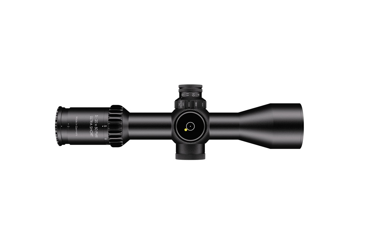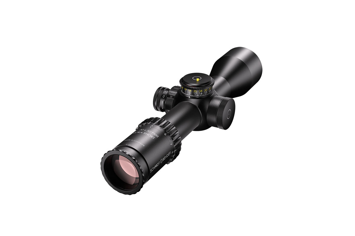 4060537063684 The 3‑20×50 PM II Ultra Short from Schmidt and Bender is a compact yet powerful riflescope engineered for high-performance engagements across medium to long distances. With its 3–20× magnification range and a 50 mm objective lens, it offers outstanding optical clarity and flexibility in a streamlined form factor. Constructed around a robust 34 mm main tube, it maintains a length of approximately 340 mm and weighs around 900 g, striking an excellent balance between size and performance—ideal for mounting on compact platforms without compromising optics. Its field of view spans roughly 13.0–2.1 m at 100 m, providing broad situational awareness at lower magnification and refined detail at the high end. The exit pupil ranges around 11.4–2.5 mm, and the eye relief is approximately 90 mm, supporting comfortable shooting in varied positions while maintaining strong light-gathering even as light fades. Advanced features include first focal plane (FFP) illuminated reticle options, side parallax adjustment (from approx. 25 m to infinity), and a low-profile elevation turret optimized for tactical precision. Key Specifications: Magnification: 3–20× Objective Lens Diameter: 50 mm Main Tube Diameter: 34 mm Field of View: approx. 13.0–2.1 m @100 m Exit Pupil: approx. 11.4–2.5 mm Eye Relief: approx. 90 mm Length: approx. 340 mm Weight: approx. 900 g With precision optics, compact build, and rugged mechanical design, the 3‑20×50 PM II Ultra Short is built for serious shooters who demand premium performance in a versatile package.