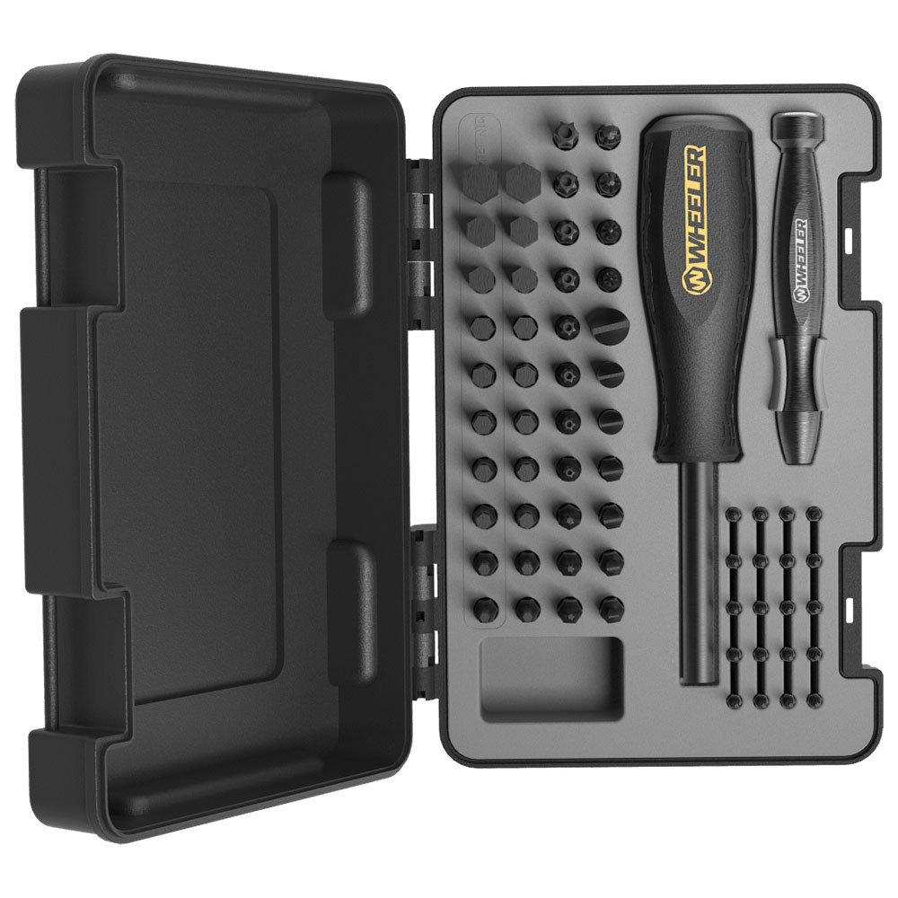 Rund av skrutrekker-samlingen din med Wheeler 65-delt Hex/TORX skrutrekker-sett. Dette settet har et komplett utvalg av SAE og metriske hex- og TORX-biter for spesialskruer.