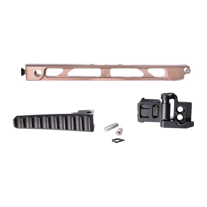 (A)rm(B)ar(9)inch + AB-FB Folding Buttplate + JMac 1913 Folding Mech (not assembled) Lightweight and Rigid! Modular Design - Brace/Stock with many mounting options Integrated QD Sling Socket 9" Length 7075 T6 Aluminum Hard-Coat Tanodized This buttplate mounts to the end of our AB (Arm Bars) Folds to prevent snagging while pulling from a bag Folds clear of drum mags 7075 T6 Aluminum Hard-coat Anodize Includes Mounting Hardware (Pin and Clip) JMac 1913 folding mechanism.