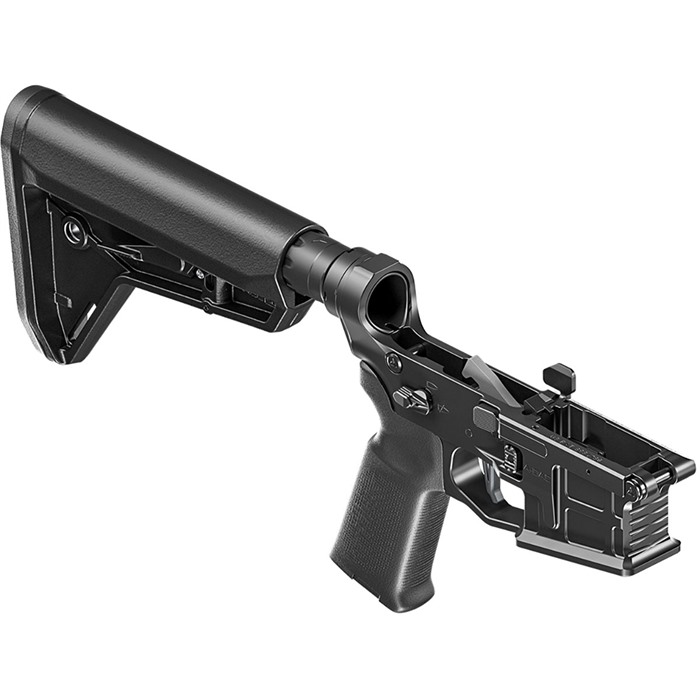 RADIAN WEAPONS ADAC-15 MODEL-1 COMPLETE RIFLE LOWER RECIEVER FOR AR-15 The design philosophy behind the Radian Model 1 is simple: use the highest quality raw materials, the most precise CNC machining equipment, and the best components available to create a weapon that seamlessly blends form and function. Beyond quality and aesthetics, the Model 1 features fully ambidextrous controls, adding much-needed utility for both left- and right-handed shooters. Every Model 1 is assembled by hand, one at a time, by a trained gunsmith who inspects, test fires, and cleans the weapon to personally guarantee it meets the most rigid quality standards. No detail has gone overlooked, which is why the Model 1—like every Radian product—is guaranteed for life. Machined from billet 7075-T6 aluminum, the A-DAC 15 is a fully ambidextrous lower receiver for AR-15–style firearms. In addition to the Talon Ambidextrous Safety Selector, left-side magazine release, and right-side bolt release, the A-DAC 15 features the patented A-DAC (Ambidextrous Dual Action Catch), which allows right-handed shooters to easily lock the bolt to the rear without taking their hand off fire control. To hold the bolt back using the A-DAC, simply pull the charging handle to the rear, depress the right-side magazine release button, then release the charging handle. FEATURES Billet machined 7075-T6 lower receiver with integral trigger guard and flared magazine well A-DAC™ Ambidextrous Dual-Action Control right-side bolt hold-open feature Ambidextrous right & left side magazine and bolt release buttons Radian Talon™ Ambidextrous 45°/90° safety selector Radian Vertex-FB™ trigger 6-position buffer tube with castle nut and QD end plate H2 carbine buffer and polished buffer spring Magpul K2 pistol grip and collapsible stock (SBA3 brace or SL buttstock)