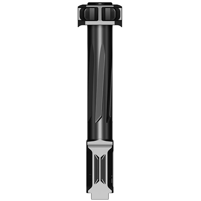 RADIAN WEAPONS AFTERBURNER + RAMJET FOR GLOCK 19 GEN 3® The Radian® AFTERBURNER™ + RAMJET™ combo provide unprecedented recoil reduction and match grade accuracy in a concealed carry package. The threadless barrel design allows effortless installation/removal for cleaning, while LEGAL FOR SALE IN ALL 50 STATES*. The AFTERBURNER™ compensator is machined from stainless steel and the RAMJET™ barrel from hardened 416R SS; both are enhanced with a Radianite™ coating. This combination achieves low friction, high hardness, and high corrosion resistance, making overall durability and erosion from muzzle blast a non-issue. Angled front faces on the AFTERBURNER aid in holstering. The INTRA-LOK® mounting system uses the taper lock principle; a tapered locking screw interfaces with an angled V-groove on the underside of the barrel. This perfectly times the compensator as it locks down onto the upper barrel profile on the muzzle end of the barrel. INTRA-LOK® allows the user to simply slide the compensator over the barrel, insert and tighten the locking screw, making for a simple and repeatable installation process. This system allows the user to easily remove the barrel from the slide for cleaning. Installed onto a Glock™ G19™, the AFTERBURNER™ + RAMJET™ combo increases the overall length of the slide to a G17® allowing compatibility with all G17® holsters. This combination kit is for: GLOCK™ G19 GEN3 (or compatible) *Certain municipalities or counties may restrict its use and certain states may restrict usage under some circumstances. Before installation on your firearm, we recommend you review your state and local laws to determine whether your use is compliant in your jurisdiction. WHAT’S INCLUDED: 1 - RAMJET Ported Pistol Barrel 1 - AFTERBURNER Micro-Compensator 1 - INTRA-LOK Tapered Screw 1 - TORX Bit DISCLAIMER: “GLOCK” is a federally registered trademark of GLOCK, Inc. and is one of many trademarks owned by GLOCK, Inc. or GLOCK Ges.m.b.H. Neither Brownells nor this site are affiliated in any manner with, or otherwise endorsed by, GLOCK, Inc. or GLOCK Ges.m.b.H. The use of “GLOCK” on this page is merely to advertise the sale of GLOCK pistols, parts, or components. For genuine GLOCK, Inc. and GLOCK Ges.m.b.H. products and parts visit www.glock.com.