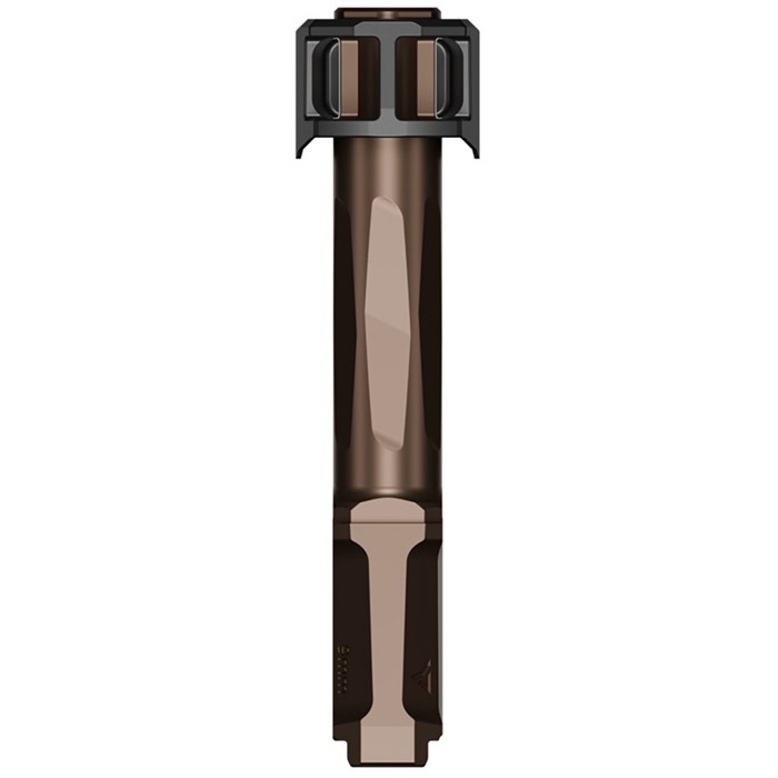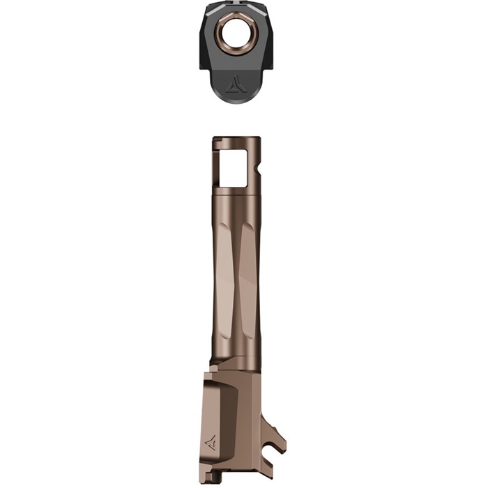 The Radian® AFTERBURNER™ + RAMJET™ combo provide unprecedented recoil reduction and match grade accuracy in a concealed carry package. The threadless barrel design allows for effortless install/removal for cleaning, while LEGAL FOR SALE IN ALL 50 STATES*. The AFTERBURNER™ compensator is machined from hardened stainless steel and the RAMJETTM barrel from hardened 416R SS; both are enhanced with a Radianite Black coating. This combination achieves low friction, high hardness, and high corrosion resistance, making overall durability and erosion from muzzle blast a non-issue. Angled front faces on the AFTERBURNER™ aid in holstering. The INTRA-LOK® mounting system uses the taper lock principle; a tapered locking screw interfaces with an angled V-groove on the underside of the barrel. This perfectly times the compensator as it locks down onto the upper barrel profile on the muzzle end of the barrel. INTRA-LOK® allows the user to simply slide the compensator over the barrel, insert and tighten the locking screw, making for a simple and repeatable installation process. This system allows the user to easily remove the barrel from the slide for cleaning. FEATURES AFTERBURNER™ Hardened SS RAMJET™ Hardened 416R SS atch Grade Barrel Gas Sealing Chamber Loaded Chamber Indicator