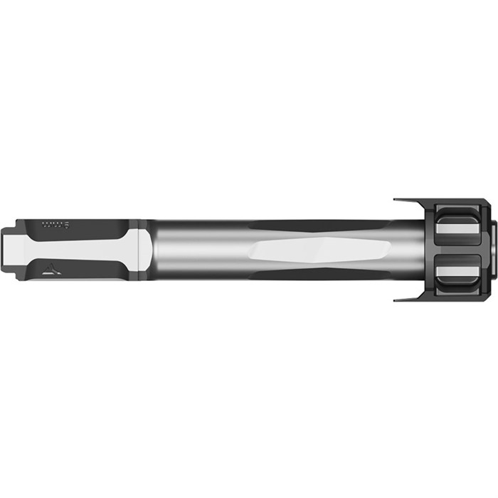 The Radian® AFTERBURNER™ + RAMJET™ combo provide unprecedented recoil reduction and match grade accuracy in a concealed carry package. The threadless barrel design allows for effortless install/removal for cleaning, while LEGAL FOR SALE IN ALL 50 STATES*. The AFTERBURNER™ compensator is machined from hardened stainless steel and the RAMJETTM barrel from hardened 416R SS; both are enhanced with a Radianite Black coating. This combination achieves low friction, high hardness, and high corrosion resistance, making overall durability and erosion from muzzle blast a non-issue. Angled front faces on the AFTERBURNER™ aid in holstering. The INTRA-LOK® mounting system uses the taper lock principle; a tapered locking screw interfaces with an angled V-groove on the underside of the barrel. This perfectly times the compensator as it locks down onto the upper barrel profile on the muzzle end of the barrel. INTRA-LOK® allows the user to simply slide the compensator over the barrel, insert and tighten the locking screw, making for a simple and repeatable installation process. This system allows the user to easily remove the barrel from the slide for cleaning. FEATURES AFTERBURNER™ Hardened SS RAMJET™ Hardened 416R SS atch Grade Barrel Gas Sealing Chamber Loaded Chamber Indicator
