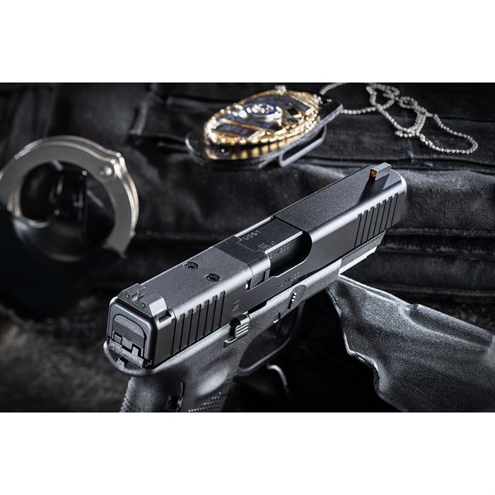 Exclusive to Brownells! The standard-issue night sight set for the FBI and US Marshals! AmeriGlo’s Agent night sight set for Glock® is a major step forward in night sight design that delivers improved visibility and faster sight acquisition in any lighting conditions. These are low-profile, fixed sights designed to meet the daily carry needs of law enforcement officers. AmeriGlo Agent sights for Glock® employ the proven 3-dot configuration preferred by many experienced shooters. The ProGlo style front blade has a vivid green Tritium lamp surrounded by a bright orange outline, so there’s no trouble identifying your front sight under stress. The fixed rear sight has a rounded U-notch flanked by two green Tritium lamps with subdued black outlines. SPECS Drop-in replacements for factory sights Swiss-made self-illuminating Tritium lamps are backed by a 12-year warranty Rear U-notch (all): .165” wide Front sights: .140” wide (G42,43 is .125” Wide) Glock® 42/43 front: .190” high AmeriGlo Agent night sights are machined from high-grade steel barstock, dehorned to prevent snagging on your clothing during the draw, and given a durable, non-reflective black finish to match your Glock® slide. Even so, the rear sight body is shaped to support one-handed slide racking in an emergency. Fits 42,43,43X,48. DISCLAIMER: “GLOCK” is a federally registered trademark of GLOCK, Inc. and is one of many trademarks owned by GLOCK, Inc. or GLOCK Ges.m.b.H. Neither Brownells nor this site are affiliated in any manner with, or otherwise endorsed by, GLOCK, Inc. or GLOCK Ges.m.b.H. The use of “GLOCK” on this page is merely to advertise the sale of GLOCK pistols, parts, or components. For genuine GLOCK, Inc. and GLOCK Ges.m.b.H. products and parts visit www.glock.com.