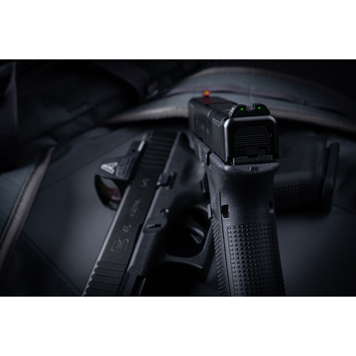 Exclusive to Brownells! The standard-issue night sight set for the FBI and US Marshals! AmeriGlo’s Agent night sight set for Glock® is a major step forward in night sight design that delivers improved visibility and faster sight acquisition in any lighting conditions. These are low-profile, fixed sights designed to meet the daily carry needs of law enforcement officers. AmeriGlo Agent sights for Glock® employ the proven 3-dot configuration preferred by many experienced shooters. The ProGlo style front blade has a vivid green Tritium lamp surrounded by a bright orange outline, so there’s no trouble identifying your front sight under stress. The fixed rear sight has a rounded U-notch flanked by two green Tritium lamps with subdued black outlines. SPECS Drop-in replacements for factory sights Swiss-made self-illuminating Tritium lamps are backed by a 12-year warranty Rear U-notch (all): .165" wide Front sights: .140"" wide Glock® 9mm/.40 S&W/.357 SIG front: .180" high Glock® 10mm/.45 ACP front: .165" high Gen5 sights fit all models of Glock®Gen5 pistols ONLY (front: .200"" high) AmeriGlo Agent night sights are machined from high-grade steel barstock, dehorned to prevent snagging on your clothing during the draw, and given a durable, non-reflective black finish to match your Glock® slide. Even so, the rear sight body is shaped to support one-handed slide racking in an emergency. Fits Gen 1-4 9mm/.40/.380, Gen5 10mm/.45 DISCLAIMER: “GLOCK” is a federally registered trademark of GLOCK, Inc. and is one of many trademarks owned by GLOCK, Inc. or GLOCK Ges.m.b.H. Neither Brownells nor this site are affiliated in any manner with, or otherwise endorsed by, GLOCK, Inc. or GLOCK Ges.m.b.H. The use of “GLOCK” on this page is merely to advertise the sale of GLOCK pistols, parts, or components. For genuine GLOCK, Inc. and GLOCK Ges.m.b.H. products and parts visit www.glock.com.