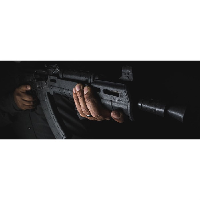 The Zhukov-U Hand Guard is a shortened version of Magpul's original Zhukov hand guard for use on short-barreled AK rifles and pistols. Like the original, the Zhukhov-U Hand Guard replaces the small, skinny wood factory guard to give you a large, comfortable gripping surface thats compatible with modern shooting techniques. An internal aluminum chassis clamps directly to the barrel for a solid flex-free installation and excellent barrel heat dispersion, while the comfortable injection molded exterior gives superior ergonomics. The Zhukov-U Hand Guard is compatible with the Ultimak gas tube rail for optics. It also allows you to retain use of the military-issue cleaning rod (unlike the original Zhukov). 1.5" shorter than the standard Zhukov hand guard Fits stamped and milled AK-47 / AK-74 rifles with standard-length gas systems Optimized for short-barreled rifles such as AK-102, AK-104 & AK-105 M-LOK slots for accessory attachment at the 3, 6, and 9 oclock positions Vented gas tube cover Counts as one US compliance part under 18 U.S.C. section 922(r) Installation requires permanent removal of the factory handguard retaining cap and forward sling mount The Zhukov-U Hand Guard can be mounted on rifles with full-length barrels, if you prefer a smaller hand guard. Due to the wide range of tolerances typical of AK-pattern rifles, minor additional fitting may be required.