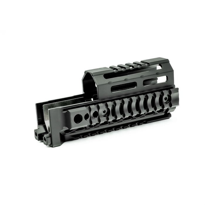 Midwest Industries har utviklet den neste generasjonen av sine AK Drop-In håndbeskyttere i form av Alpha Quad Rail! Denne håndbeskytteren er designet for full fleksibilitet med full håndbeskytter, kun bunnhåndbeskytter, MI AK Alpha Series optikk og toppdekseltilbehør, samt railed gassrørkonfigurasjoner.