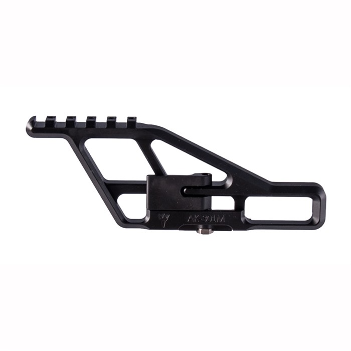 SPECS: 6061 T6 aluminum, matte black Teflon coated finish. Accepts optics with 30mm OD tube. Fits AK and AKM rifles equipped with receiver side mount base dovetail. Base not included.