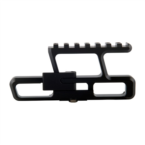 SPECS: 6061 T6 aluminum, matte black Teflon coated finish. Accepts optics with 30mm OD tube. Fits AK and AKM rifles equipped with receiver side mount base dovetail. Base not included.