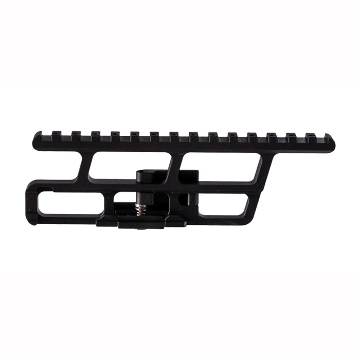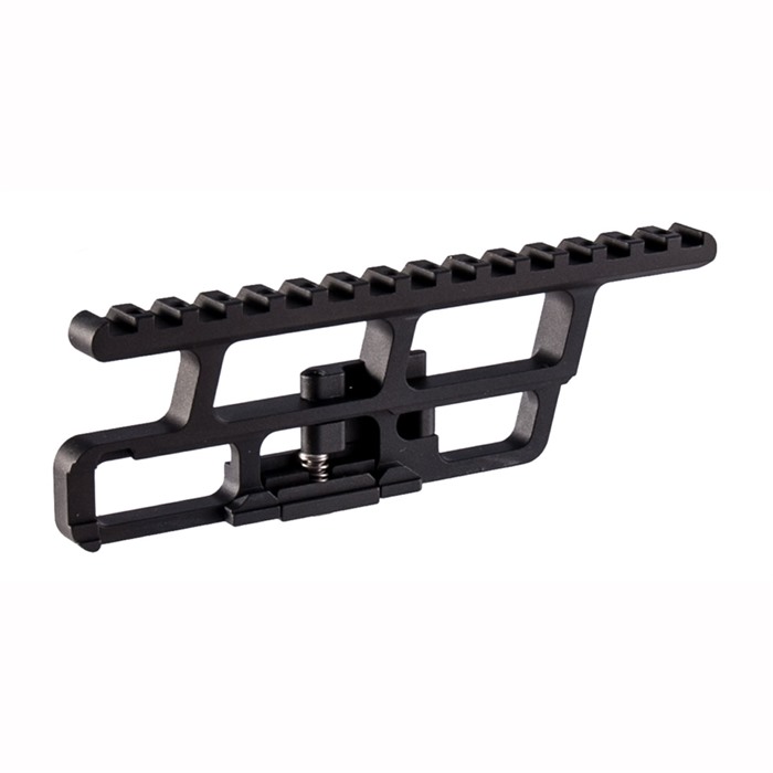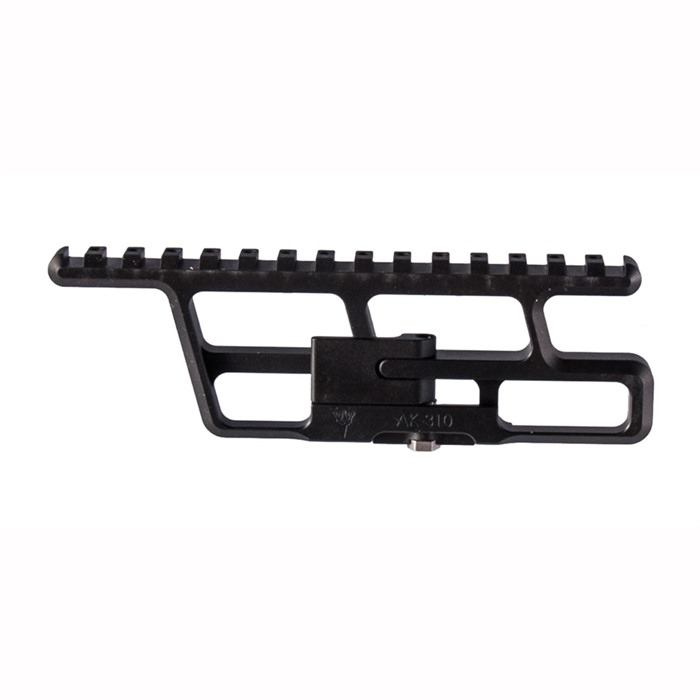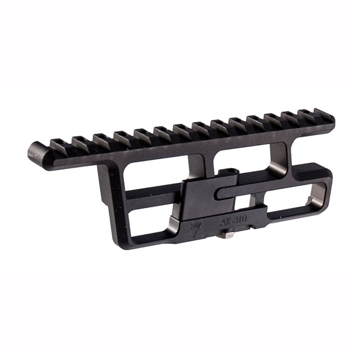 SPECS: 6061 T6 aluminum, matte black Teflon coated finish. Accepts optics with 30mm OD tube. Fits AK and AKM rifles equipped with receiver side mount base dovetail. Base not included.