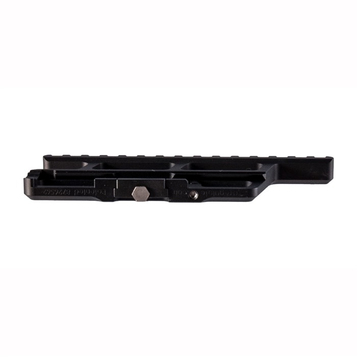 Updated design allows for customization of the mounting platform. Option of three different lower mounts, with a full length lower rail, forward rail and rear rail. Placement of lower rail allows for optics to be positioned in the ideal location front to back, as well as right to left. Lightweight CNC machined aircraft grade 6061 T6 aluminum. Position optics in co-witness location. Allows field stripping of the rifle without removal of the optic on most AK variants. Redesigned thumb lever lock retains zero even after repeated optic removal and reinstallation. Ability to stake position for extreme duty. AKML allows the mounting of the Aimpoint T-1 and H-1 Micro Red Dot Optics AKOG allows the mounting of Trijicon ACOG sight systems