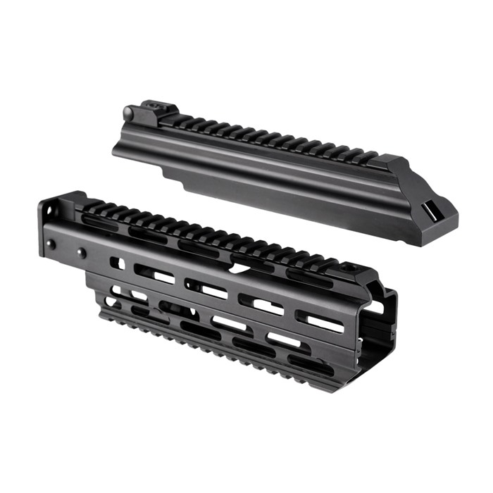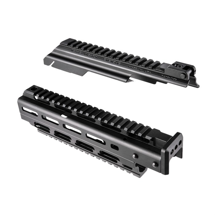 Texas Weapon Systems AKM Bundle Top Cover Keeping your shots on target is what it’s all about. Whether you require the quick target acquisition of a red dot or the range of a magnified optic, the Gen-3 Dog LegTM scope rail has you covered. Mounted directly over the receiver, the patented Dog LegTM scope rail with integral dust cover provides optimal balance, generous rail space, and protects delicate optics from barrel heat. The ingeniously simple and rugged design provides a rock-solid mount for accuracy and a forward hinged, quick release cover with rear cam lock design to preserve the AK’s field stripping qualities. The quick release hinge also allows the use of longer scopes without the need for quick detach mounts. Available in various configurations for standard pattern AK, Yugo, C39 and PSL rifles. Hand Guard Designed as part of an integrated system the Gen-3 Hand Guard offers greater levels of functionality, modularity, and durability. The co-planar top rail keeps all accessories such as optics, night vision, or thermal devices properly aligned. For additional functionality the Gen-3 Hand Guard is also M-LOK compatible. The semi-floated hand guard design minimizes barrel disturbance while the ample ventilation holes assure the quickest cooling and minimize weight. Critical AK functionality is retained by allowing the installation of the cleaning rod and bayonet Picatinny Rail Fits AKM type stamped receiver rifles with standard smooth front trunnion. Includes barrel clamp for standard barrel diameter of .670" +/- .010" as measured 1/4 inch before rear sight block. Will not fit Yugo, milled receiver, or bulged front trunnion type rifles.