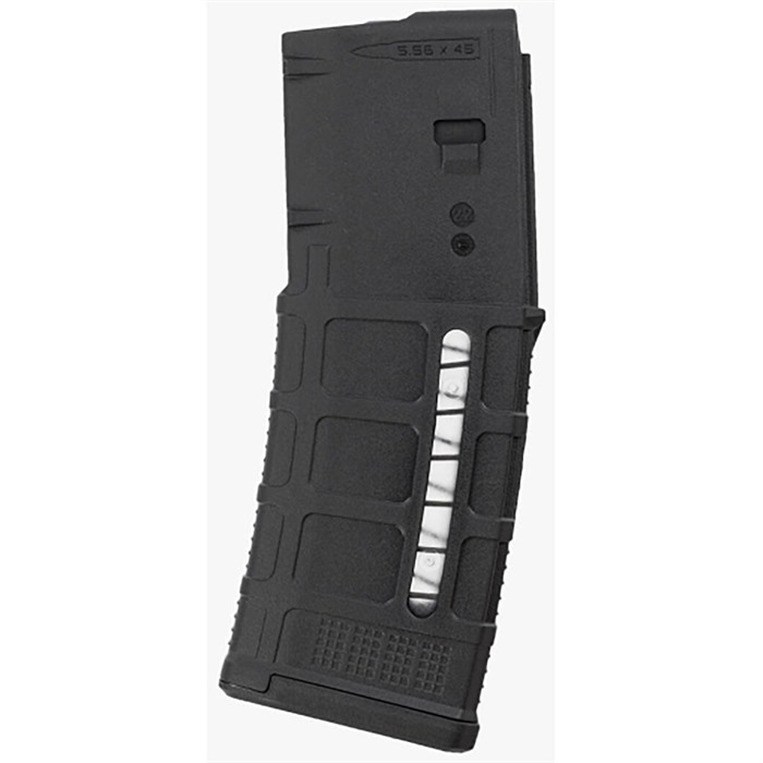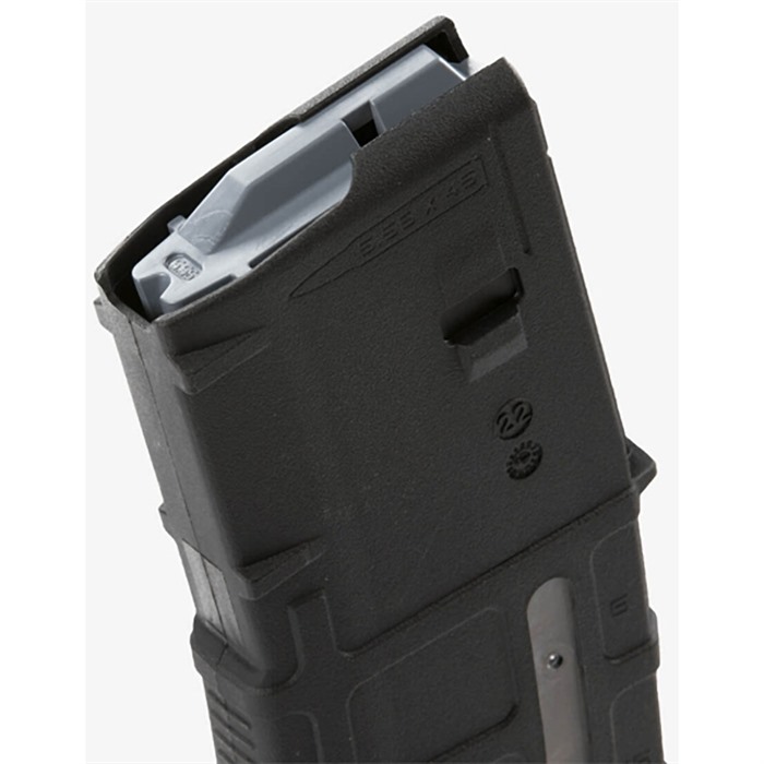 The polymer magazine that revolutionized magazine technology for the AR-15/M16/M4 platform just got even better. The third-generation PMAG further expands the strength, reliability, and versatility of the original PMAG. Along with all variants of the AR-15/M16/M4, the GEN M3 is fully compatible with the HK® 416 and MR556A1, M27 IAR, British SA-80, and even the FN® SCAR™ MK 16/16S. It’s molded from a polymer formula that delivers distinctly greater resistance to crushing and all forms of impact, with extra reinforcement in the mag catch and feed lip areas. A new-design four-way anti-tilt follower ensures even smoother feeding, even when contaminated by dust or grit. Pop-off dust cover, included, helps minimize debris intrusion and prevent damage during storage. The removable floorplate is both stronger and slimmer for easier side-by-side carry in tight mag pouches. A pen dot matrix on each side allows consistent ID marking that resists handling wear. PMAG 30 is available with a clear polymer window on each side that lets you see the load status at a glance. Windows are made from an all-new, advanced clear polymer formula that offers even more resistance to chemicals and impact than the original MagLevel PMAG.
