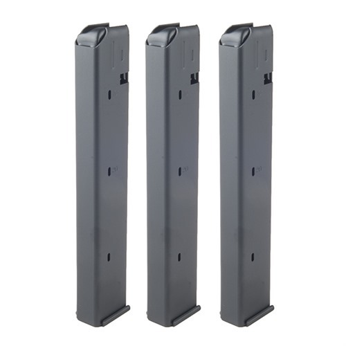 SPECS: Fits 9mm AR-15 rifles that accept Colt style magazines. Body – Steel construction with a matte black Xylan finish. Follower – Steel, round. Spring – Extra power steel. Floorplate – Removable steel.