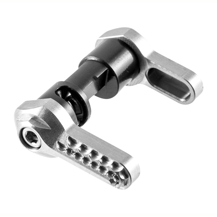 Konvertibel Ambi-funksjoner Med Både 57° & 90° Spakbevegelsesalternativer Lar Kunder Velge Mellom En Kort Eller Standard Bevegelse Kompatibel Med Både AR-15 & AR-10 Stil Rifler (Semi-Auto) Korrosjonsbestandige Spaker & Kjerne Inkluderer 4/40X1/4 Gr. 5 Titan Torx Socket Hode Skruer, Mil-Spec Sikkerhetsdetent & Fjær. (Svart Ti Velger Sendes Med Svart Stålskruer.) 100% Livstidsgaranti Laget I USA Veier Ca. 11,77 Gram Kjerne: Konstruert Av Gr. 5 Varmebehandlet, Herdet Titan Belagt Svart Med Ion Bond Finish Spak: Konstruert Av Titan Rå Titan Finish Spaker Kommer Løst Montert. Vi Anbefaler At Kunder Avfetter Kjerne Og Skrueganger Og Monterer Med Blå Loctite Påført Skrueganger. Ikke Stram Selector Skruene For Mykje!! Skruene Bør Strammes Til Maksimalt 20 Tommer Pund. ?Ambidextrous Versjon Er Ikke Kompatibel Med Hyperfire Avtrekkere Eller Ruger Precision Bolt Action Rifler.Leveringstid ca. 14-21 dager.