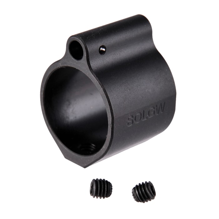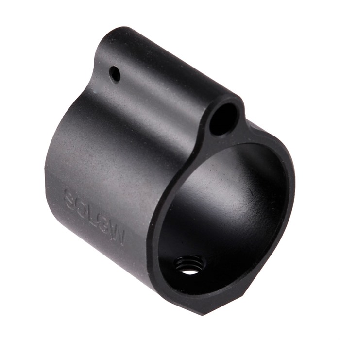 Sons of Liberty Gun Works factory OEM low profile .875 Gas Block for Mil-Spec AR-15s. Each SOLGW AR-15 Low Profile Gas block is machined from 4140 steel and ships with knurled Head set screws designed to work with any dimpled AR barrel. The block is nitride-treated for corrosion- and wear resistance and is designed to provide long-lasting service on your fight-ready AR.