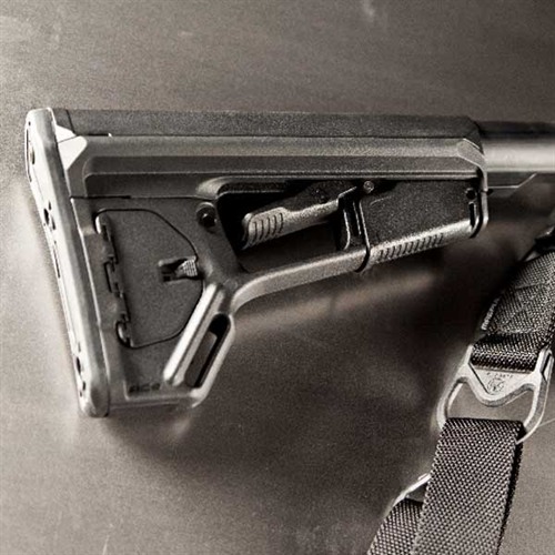 Også beholdt er oppbevaringsrommet i halen av stokken, samt friksjonslåsesystemet som forhindrer uønsket bevegelse etter at stokken er utvidet. Den inkluderer en reversibel kontakt for QD pushbutton sling swivels og en 1" sling loop støpt i tåen av stokken. Den 0.3" tykke gummirecoil-paden kan byttes ut med Magpul Tactical Recoil Pads (selges separat).