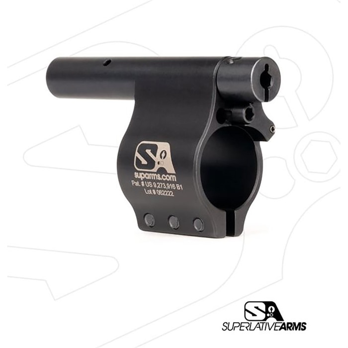 Superlative Arms patenterte Bleed Off®-modus, gasspiston-systemet for AR-15-plattformen, justerer gassstrømmen ved å lede gassen ut foran blokken i stedet for å begrense strømmen som konvensjonelle justerbare blokker.
