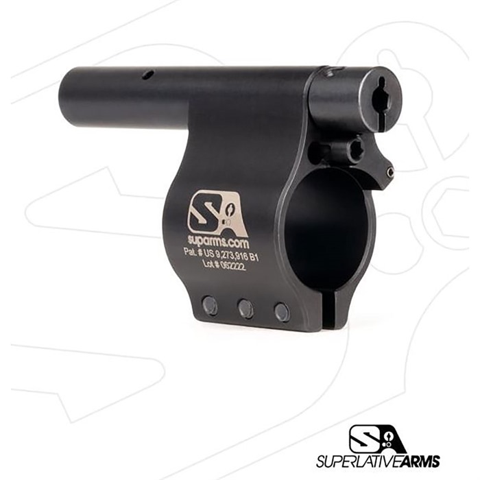 Superlative Arms Patented Bleed Off® Mode, gassstempel-systemet for AR-15 plattformen justerer gassstrømmen ved å lede gassen ut foran blokken i stedet for å begrense strømmen som konvensjonelle justerbare blokker.