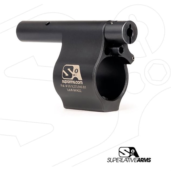 Superlative Arms patent pending “Bleed Off” gassblokk for AR15-plattformen justerer gassflyten ved å slippe gass ut av blokken i stedet for å begrense flyten som konvensjonelle justerbare blokker.