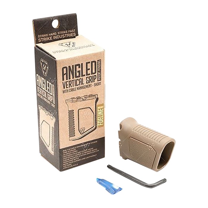 The Strike Industries Angled Vertical Grip with Cable Management is engineered like no other grip on the market. The grip angle sits on the handguard at 86 degrees. Patent pending SI cable management function enables you to organize and store excess wire from your weapon light or any other cabled accessories in multiple configurations. Instead of tucking wire anywhere you can and using cable ties or tape to hold it down, the cable management feature will offer you a place to route and/or contain loose wire inside the grip cavity. The side cuts at the top middle of the grip allow for easier pressure switch attachment. Compared to the Short version, the Long version has an added built-in stability feature when you place the L-shaped bottom onto a table edge/corner or as a barricade stop, giving you another way to get back on target faster downrange. The Short version can be mounted in either direction for your own preferred and personal setup and is low-profile form helps to minimize snags. The forward angle provides more of a natural wrist angle and increased rigidity of forearm. Designed with textured palm and finger areas with flat sides for positive handling and easier manipulation of the firearm. Made from durable and lightweight polymer compatible with M-LOK rails, the Strike Industries Angled Vertical Grip with Cable Management (Long) gives the shooter control while handling or firing the weapon, added stability (Long) with table/edge corner or as a barricade stop and an innovative way to ensure total cable management. No messy wires. 86° grip angle Built-in cable management w/ excess wire storage (patent pending) Forward angle provides more of a natural wrist angle and increased rigidity of forearm Side cuts at top of grip for pressure switch cable routing Built-in stability when L-shaped bottom is placed on a table edge/corner or as a barricade stop (Long) Low-profile design to minimize snags (Short) Can be mounted in either direction for preferred setup (Short) Textured palm and finger areas with flat sides for better weapon manipulation control Made from durable and lightweight polymer For M-LOK rails