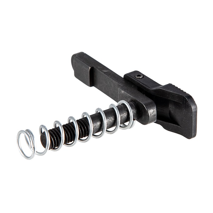 EMR-A is a serrated or dimpled ambidextrous magazine release for .223 and .308 AR receivers. EMR-A is an ergonomic ambidextrous magazine release. The placement of its lever mirrors the release button on the right side. It has a lower profile the portion below the bolt catch's lower paddle has a lower profile and it is also left smooth. The serrated or dimpled length of the lever is split into a shallow V shaped serration (80%) that conform to the curvature of the user's finger to provide additional traction. A 10.9lb rated magazine catch spring is included with each EMR-A. EMR-A's catch is made from CNC machined 4140 steel and black nitride coated, its lever is 7075 aluminum and Type 3 hard coat anodized. The roll pin has a shear strength of 800lbs. Extended version is .09” Lever AR15/M16 ambi mag catch Intuitive contoured lever Includes a 10.9lb extra spring rate mag catch spring Serrated or Dimpled Texture Notes: EMR-A's lever pivots on the receiver. EMR-A needs to be removed before installing / removing the trigger. EMR-A is installed and removed in the same manner as a factory mag catch. Please wear eye protection while installing EMR, EMR-C, and EMR-A with the 10.9lb mag catch spring, there's considerable spring tension in the 10.9lb spring. Incompatibilities: Geissele's Maritime Bolt Catch. Material from either the top edge of EMR-A's lever, or the bottom edge of Maritime Bolt Catch's lower paddle may need to be removed for both to work together. The close proximity of these two control surfaces makes this combination less than ideal. CMC's anti walk pins KNS Gen 2 anti-rotation trigger/hammer pins. KNS Gen2 Mod2 and Gen JJ, and Gen ST (Spikes Tactical) are compatible with EMR-A with standard lever, but not with extended lever. Gen2 Mod2's pins connecting bar may require minor fitting on thicker receivers to create adequate clearance for the EMR-A's lever when pressed. Battery assist device levers. Receivers with the left side fence around the bolt catch and mag catch, such as some CMT, Magpul and AR15.com billet receivers. EMR-A requires the left side of the receiver to more or less adhere to TDP spcs. HK 7.62mm AR style rifles, MR762 series. Hodge Defense Mod 2 lower receivers. May not be compatible with Seekins SP223 and AR10 B receivers. Due to lack of standards for 308 ARs, EMR-A may not work with 80% 308 ARs.