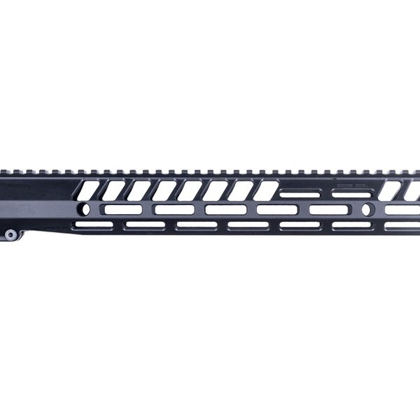 AR-15 Full Top Rail MLOK Handguard (Inkluderer Barrel Nut & Hardware). Håndguardet er laget av 6061-T6 aluminium og anodisert svart i henhold til mil-spesifikasjon MIL-A-8625F, TYPE III, CLASS 2. Barrel nut er laget av 4140 PH stål.