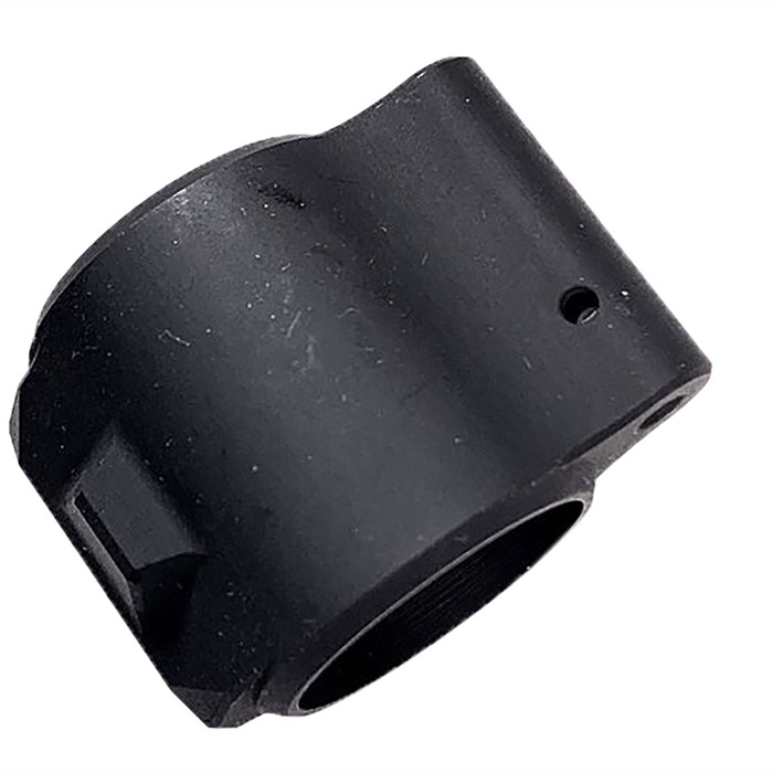 GBF (Gas Block Forward Controls) is a 0.750 gas journal gas block done FCD way: meticulously designed and machined, with thoughtful features throughout. Machined from heat treated 4140 bar stock, GBF is manganese phosphate coated, GBF holds rather tight tolerances to squeeze every bit of tight seal we can from the design. GBF's gas tube hole can be described as semi blind hole, in that it has an access port just big enough to allow a 3/32 punch to go through. This feature was suggested by the late Semper Paratus Arms owner and operator, Will Larson, its purpose is to minimize the gas tube hole as much as possible, while providing a means for users to use a punch to dislodge an recalcitrant gas tube that's been fixed in place by carbon. Other useful feature is the bosses on both sides of the GBF to give gunsmiths an easy reference point to pin the GBF to the barrel. Both 5/32x5/8, and 1/8x5/8 pins can be used to pin the GBF to the barrel. Its set screws are 0.450 apart, which is compatible with one of the set screw spacing options on the popular SLR Rifleworks's 750 dimpling jig. GBF isn't meant to be a lightweight gas block, they prefer strength and dependability over any ever-changing fad. GBF's sleek appearance is the result of removing material that adds weight but doesn't contribute to the strength and reliability. A gas tube pin, two knurled set screws are included. 5/32x5/8, and 1/8x5/8 coiled pins are a no cost option. Proudly designed and made in the USA." "Billet machined Heat treated Parkerized 0.750 AR15/M16 low profile gas block 3/32 punch access port in front Knurled set screws and gas tube pin included