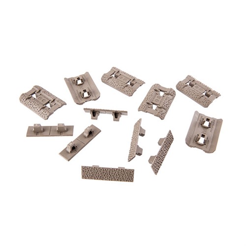 M-LOK Type 2 Rail Covers are low-profile, two-piece covers that install directly onto M-LOK compatible systems. These M-LOK Covers are non-orientation specific which allow the user to mount them in any direction desired without affecting function. The contact surfaces on these covers are textured using the Magpul TSP texture for additional grip, adding slightly more than 1/8” from the mounting surface, these covers also feature a beveled contour to minimize potential snagging. The locking tab is pre-scored down the center to allow the user to snap off sections and mix and match colors for a more custom look. Includes six panels. Each covering one M-LOK slot.