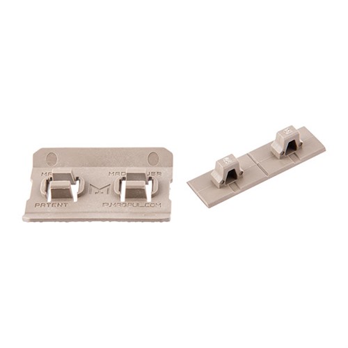 Den låsende fanen er forhåndsskåret ned i midten, slik at brukeren kan knekke av seksjoner og blande og matche farger for et mer tilpasset utseende. Inkluderer seks paneler, hver som dekker ett M-LOK spor.
