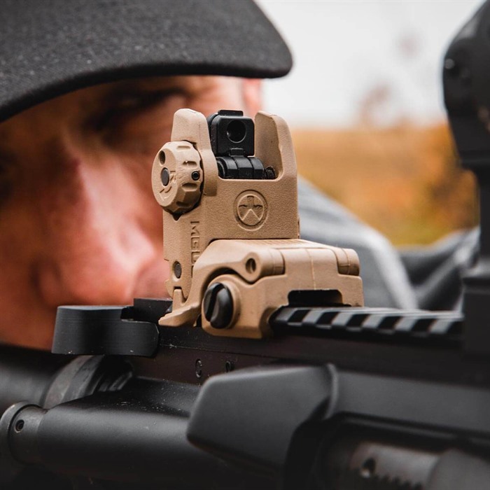 AR-15 MBUS GEN 2 TACTICAL REAR SIGHT fra MAGPUL er et lavprofil, polymer sikte som raskt kan aktiveres med et fingertrykk. Dette sikte gir en sikker backup hvis primæroptikken skulle svikte.